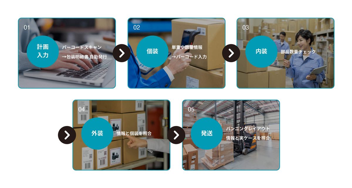 生産オーダー部品を正確な数だけ包装し、正しい送り先へお届けするためには、各工程でのチェック作業が欠かせません。ホンダロジスティクスでは、バーコードを利用した「システム」を導入して、チェックの確実性と省人化に大きな効果を上げています。このシステムではオーダー部品と現物を照合することで部品・数量を保証。梱包においては仕様が視覚的に確認可能で、人的なミスを削減し高品質な作業を実現。また実績データを用いて部品のトレーサビリティ保証も行っています。